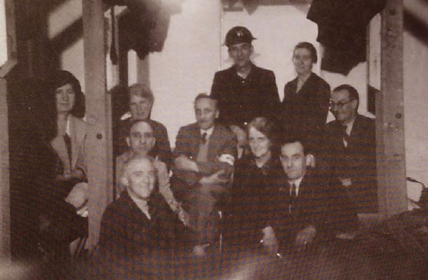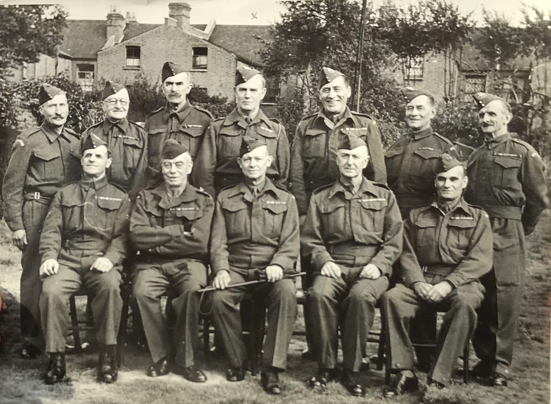 Into this cosy self-sustaining commuter homeliness, the Second World War came crashing. Earlsfield suffered with some small but high-profile incidents which would have shaken the community. Barney was a Warden with a post in nearby Garratt Park. In September 1939, half a million children were evacuated from London, including young Michael Aspel living at 42 Isis Street. He wouldn’t see his four year old brother Alan for five years. Some of the shops on Garratt Lane had their basements heavily fortified with concrete floors and extra strong timber supports to provide civilian shelter. One of these was the Sheehey’s Bonbon sweetshop at 420, now Mr Patel’s newsagents. In the early days of the Blitz, several high-explosive bombs wiped out a terrace of shops at the junction of Garratt Lane and Burmester Road opposite the Prince of Wales. In November fire stations were hit at West Hill and in Balham, killing 20 fire personnel. A few days after the Balham tube disaster, a bomb on the night of 17/18 October 1940 destroyed Waldron Road School, opposite The Leather Bottle and a stone’s throw from Barney’s home. A Home Guard was formed and the below photo was taken in Garratt Green with Franche Court Road in the background. It shows men who Barney Jacobs would surely have known.
